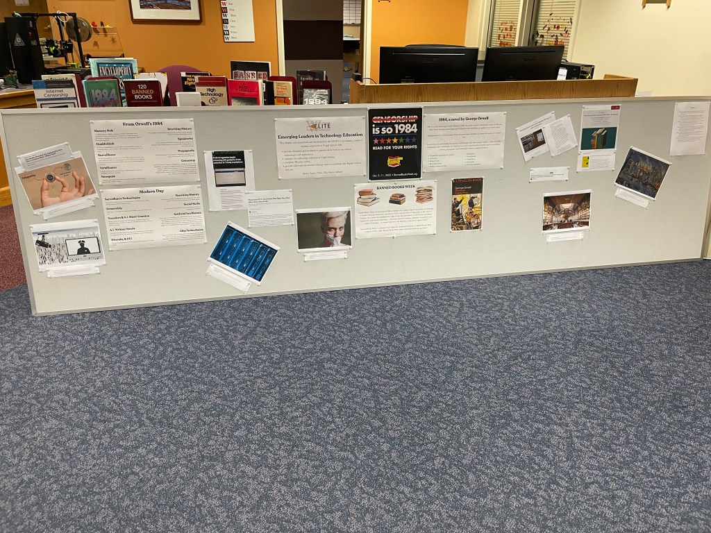 At the ELITE desk, which is the technology desk at Vogel Library, employees will be discussing imaginary technology mentioned in George Orwell’s 1984 and what items we have today that are similar.
