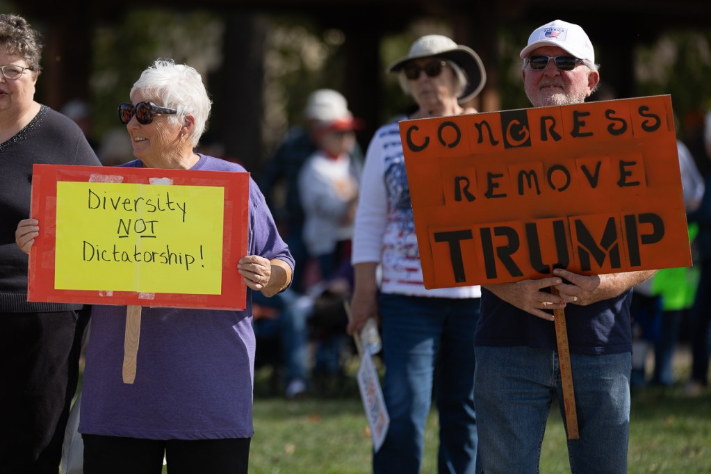 “Over 500 people exercised their constitutional right to protest and peacefully rally in Waverly. Thank you to all who continue to fight for democracy. Now vote!” says the Bremer County Democrats Facebook page.