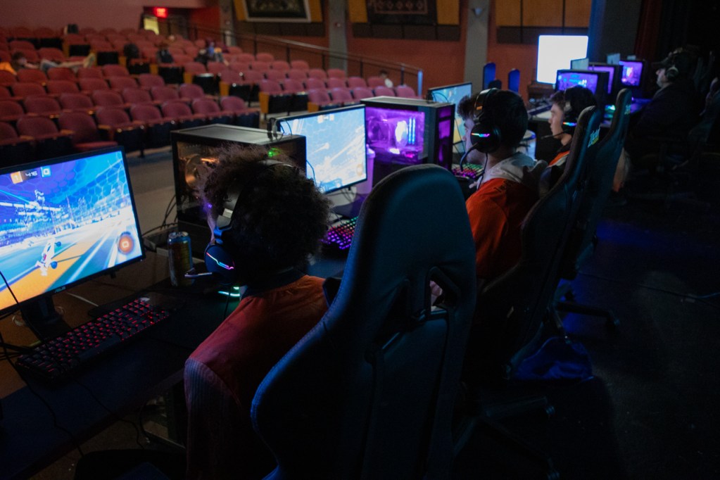 Rocket League action in the Lyceum continues as Wartburg College plays against Cornell College. Photo by Addy Wells.