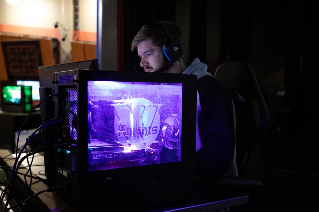 The Wartburg Knights logo on the PC glows. Photo by Addy Wells.